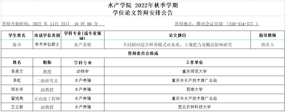 2022年秋季学期学位论文答辩安排公告