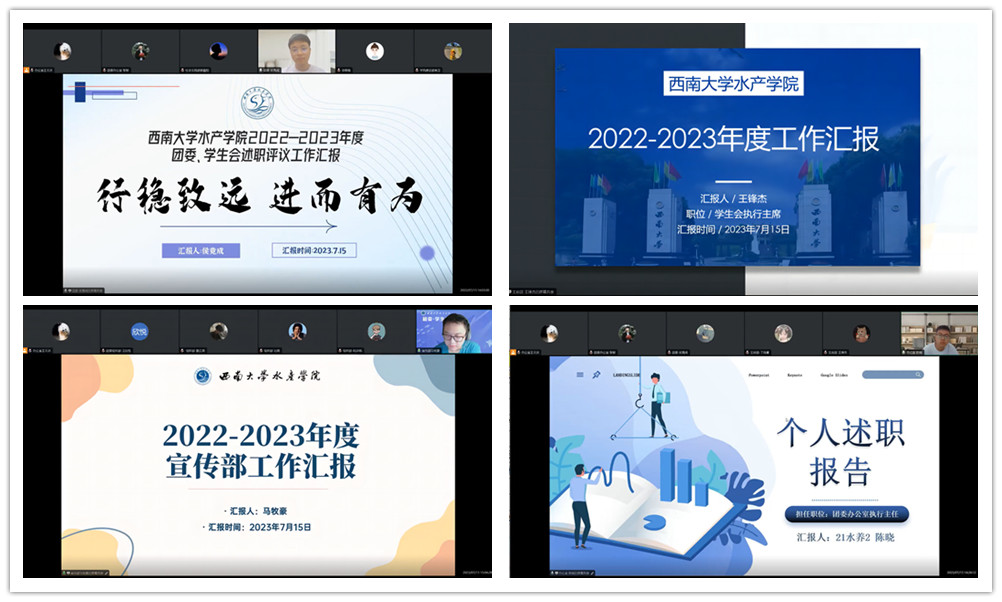 此次大会以汇报学习的方式展开,切实反映了团学成员一学年的工作情况,为团学高质量发展,提供了查缺补漏、吸取经验的平台。会上,主席团成员、各部门部长及干事依次以PPT的形式展开述职汇报。主席团成员主要围绕工作回顾、工作成果、工作困惑、工作难点进行报告,并结合实际工作经验为推进团学工作提出可行性建议。各部门部长及成员从工作内容和总结反思两个方面展开汇报,详细陈述了工作情况,客观总结成效,积极查找不足,为把握未来,成就更加卓越的团学组织建言献策。汇报凝聚了每位成员在这一年团学工作的成长,充分体现了全体团委、员工会在工作中的责任意识与服务精神。