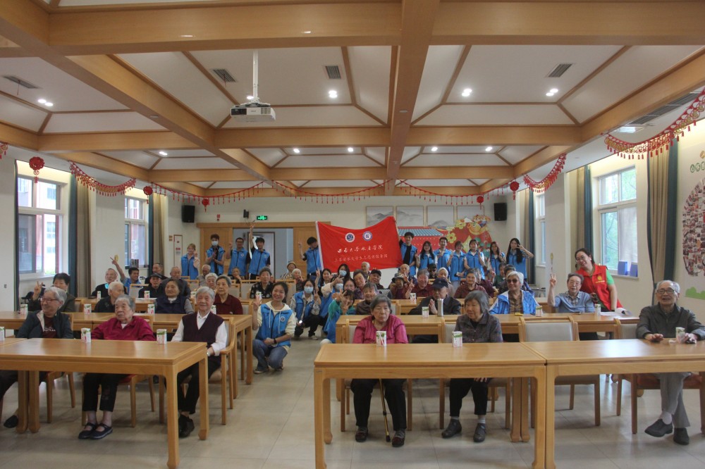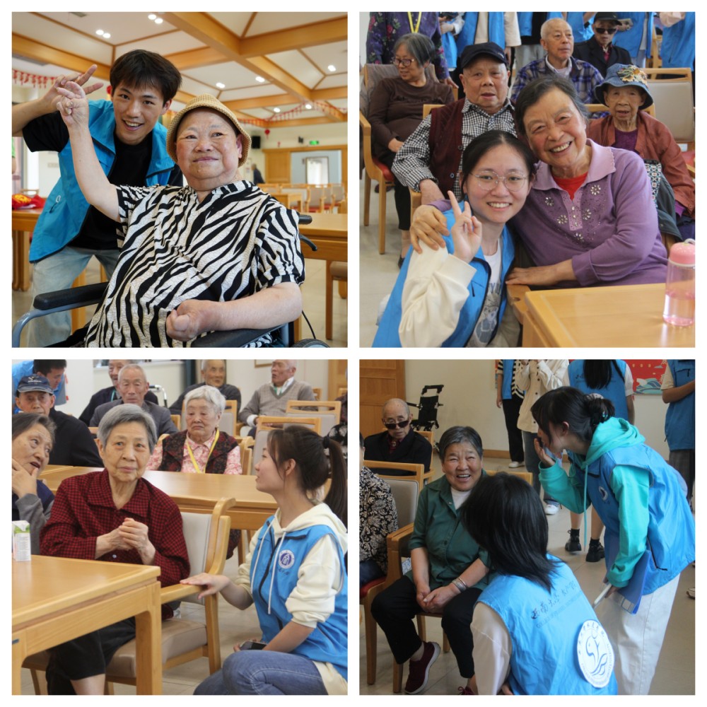 生活无处不小事,一枝一叶总关情。表演结束后,志愿者们三两成队,围绕老人膝旁,与他们拉家常,话桑麻,送上暖心的关怀与问候。“挥刀舞剑白发人,美酒陈年味更醇。”在与老人们的促膝而谈中,志愿者们已然窥见老人们的峥嵘岁月。随着交流的深入,志愿者团了解了老人们的家庭情况和健康状况以及在颐养中心的生活日常,同时殷切叮嘱他们按时吃饭,锻炼身体,保持身心愉悦。时间流转,夕阳黄昏已至,志愿者陪同老人回房休息,长廊走道上老人们身影渐远,活动也就此落下帷幕。