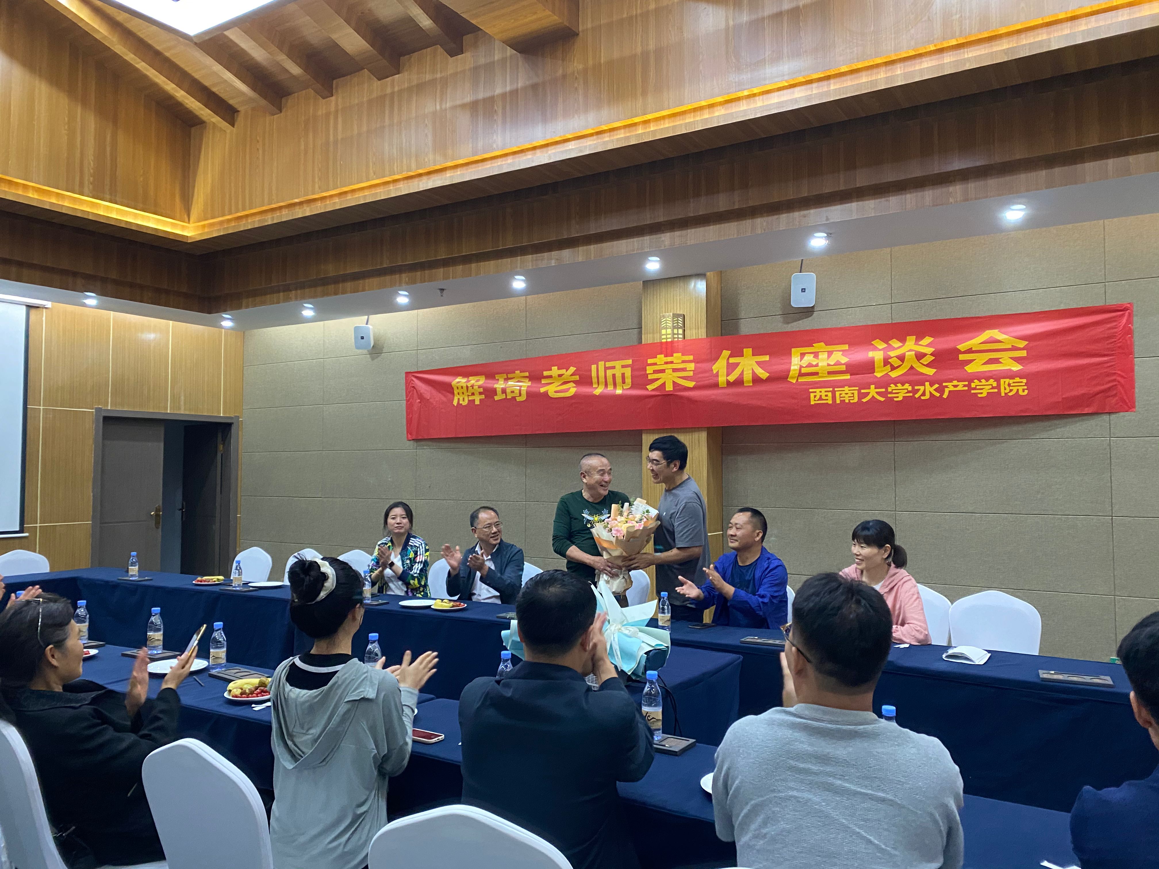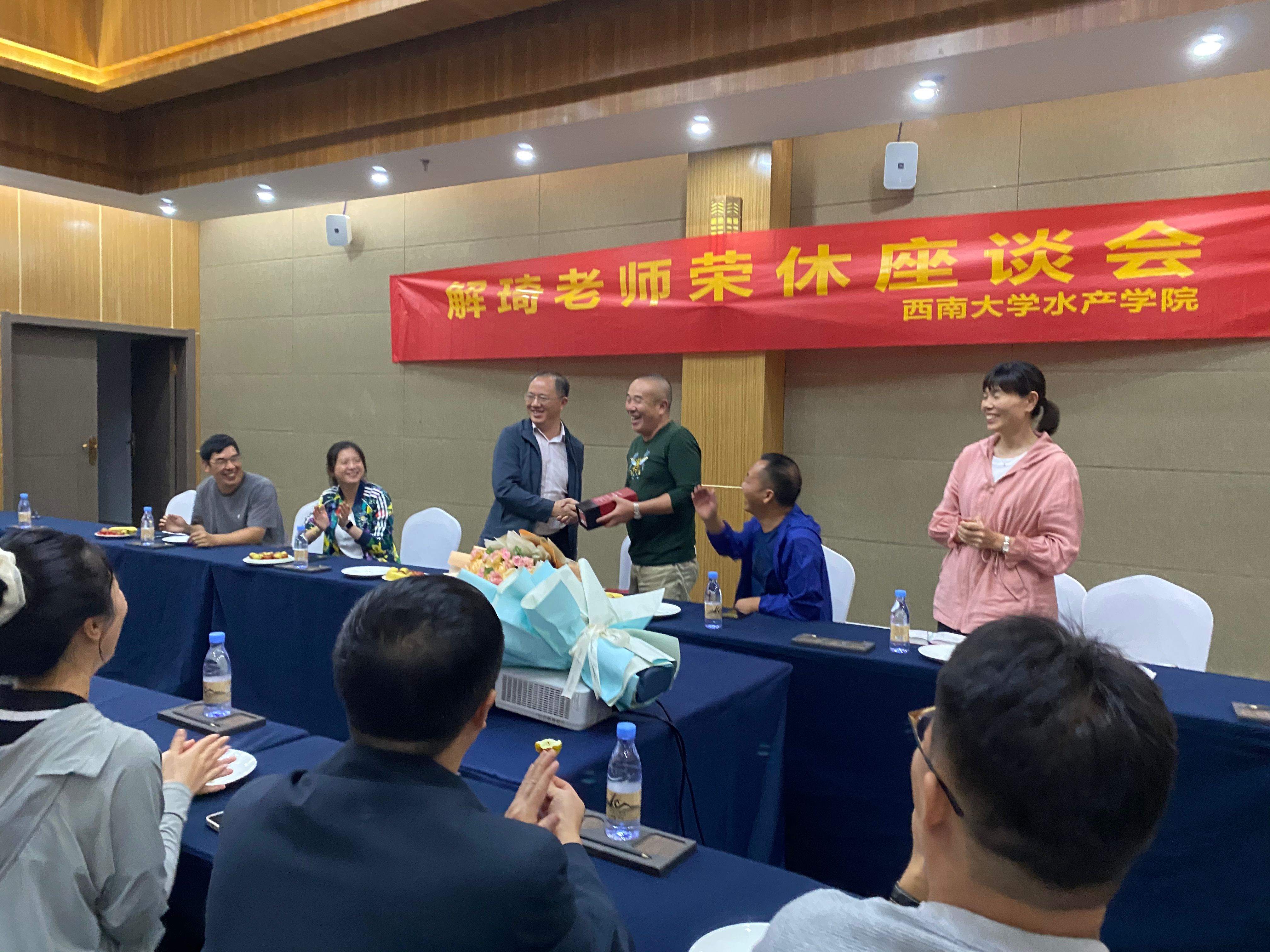 解琦老师回忆了工作四十年的难忘时光,春风化雨,桃李芬芳,江河湖畔、养殖场都留下了解琦老师忙碌的身影,标本室那一件件珍贵的鱼类标本更是解琦老师无私奉献精神的见证。
