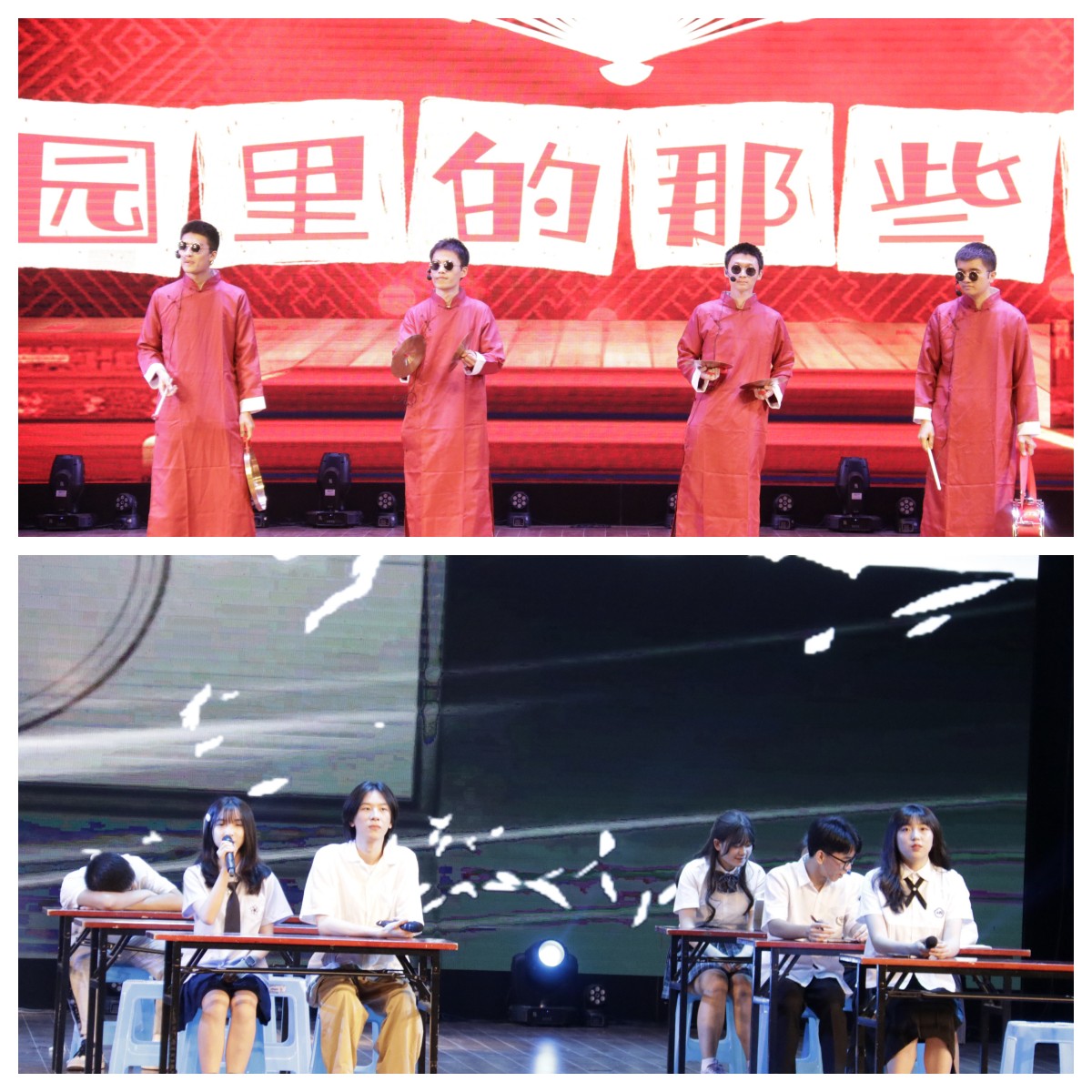 一曲民乐合奏《象王行》奏响了中华民族五千年的磅礴与苍茫,泱泱华夏的过去与未来。说唱歌曲《我想要的生活》引得无数毕业生情感共鸣,心中感慨。紧接着,欢乐愉快的三句半表演《校园里的那些事儿》和歌曲串烧《属于我们的歌》将大家的青春描摹幻化成绚烂的回忆,在舞台重现。