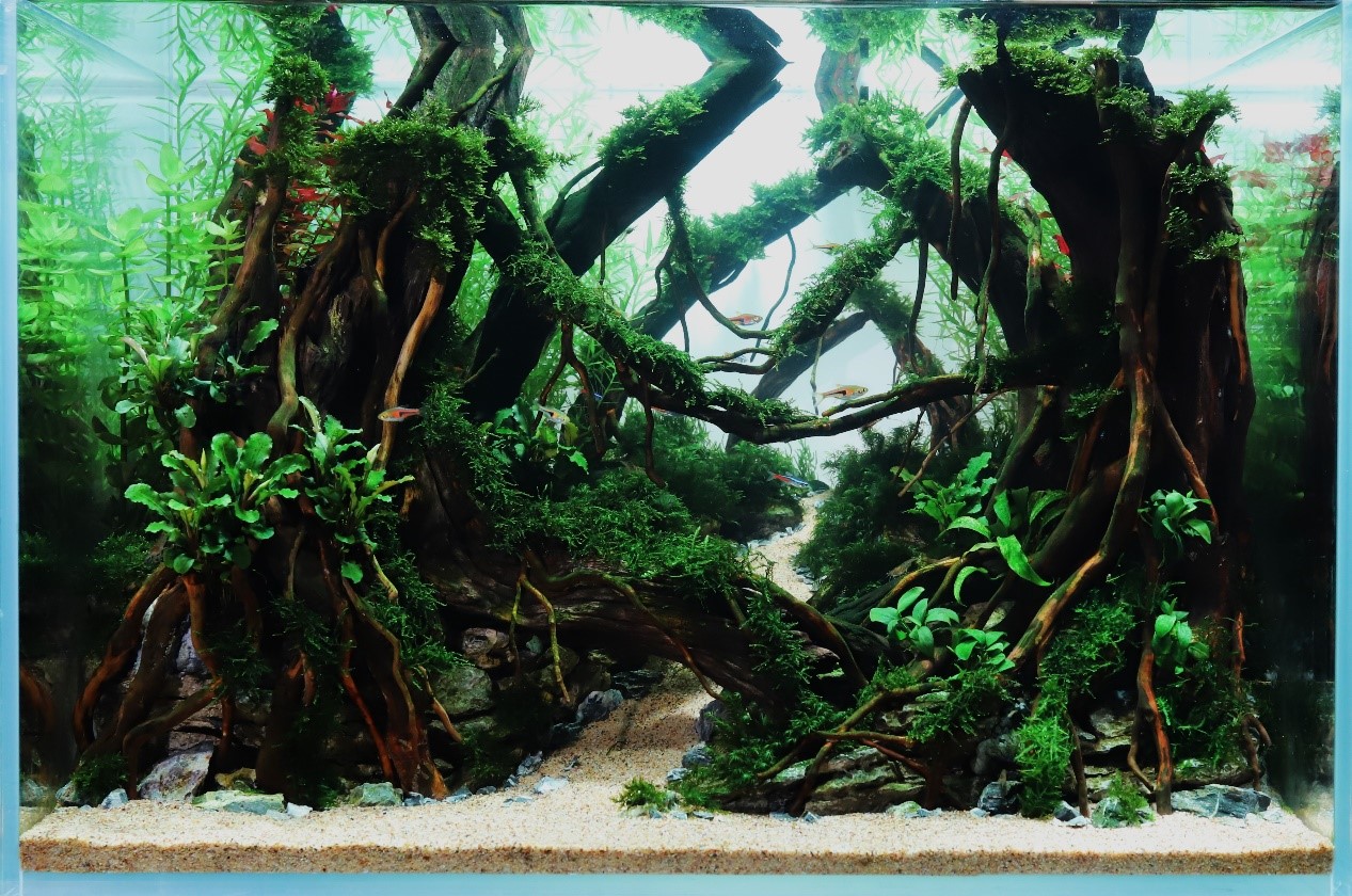 公司从水产养殖学、水族科学与技术专业员工中选拔组建了12个参赛队参加了全部6个赛道的比赛。参赛队伍在永利3044集团官网多名老师的精心指导下,经过为期5周的激烈角逐,全部获奖,斩获4个特等奖、4个一等奖和4个二等奖。其中高源、丁筱蕃同学的中缸石景作品《一线见云天》获得特等奖,张佳怡、孙星宇的中缸木景作品《绿野仙踪》获得特等奖,赵文静的小缸石景作品《别有洞天》获得特等奖,蒋云潇的小缸木景作品《郁林》获得特等奖。