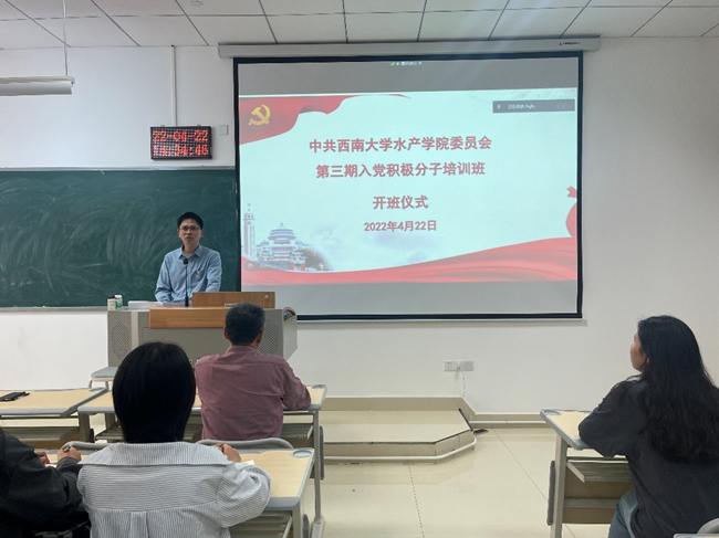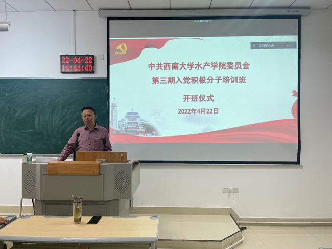 4月22日下午,永利3044集团官网第三期入党积极分子培训班开班仪式在荣昌校区7B212教室举行。水产公司党委书记、党校董事长朱汉春,水产公司党委副书记、纪委书记、党校副董事长穆奎,动物科学技术公司正科级组织员贺春湘,动物科学技术公司辅导员彭香,永利3044集团官网辅导员祁礽和来自永利3044集团官网、动物科学技术公司八十余名学员参加了开学典礼。会议由永利3044集团官网组织员陈博主持。