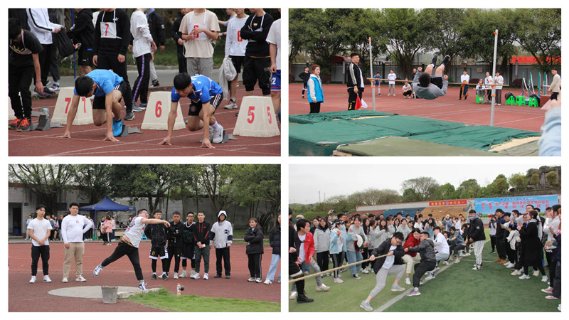 首先迎来的是男子100米短跑比拼,红色橡胶跑道上,运动员们摩拳擦掌,用十二分的精神和最饱满的热情为运动会营造了热血气氛。随后,女子100米、男、女200米、800米接踵而来,一道道风驰电擎的身影在跑道上闪过;跳高、跳远运动员们沉住呼吸,奋力一跃的样子将被运动场永远记录。场外休息的同学们也十分热情,他们或在跑道一旁,或在操场一隅,为运动员们呐喊着加油。主持人在台上慷慨激昂地念着加油稿,一字一句落入每一个奋力拼搏的同学心里。十点半的拔河运动,将所有同学聚集到操场中央,一声声呐喊将运动会的气氛推向高潮!下午的活动依旧精彩,各种预决赛,让运动场在此热闹了起来。恰同学少年、风华正茂,紧接着的团体接力赛更是让同学们的团魂燃烧起来,此起彼伏的加油声穿过云层,冲破天际。