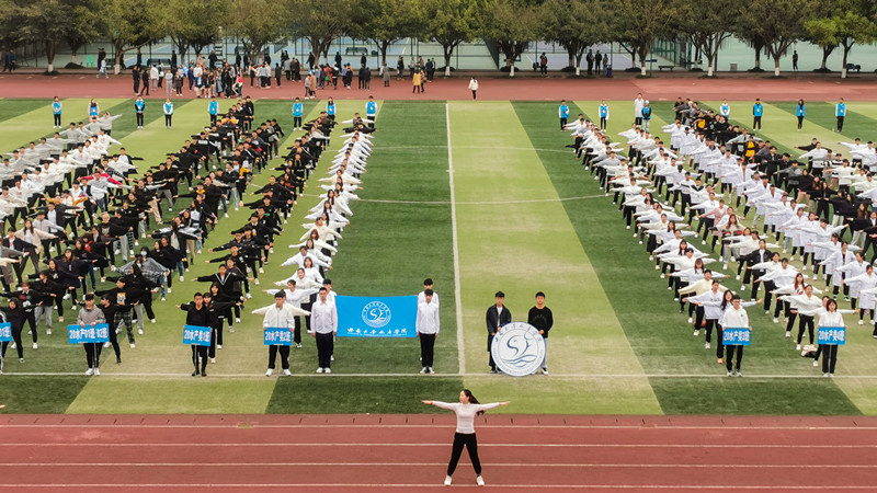 伴随着歌声响起,全体水产学子的广播体操表演正式拉开了运动会的帷幕。优美大方的体操动作,恰同学少年。