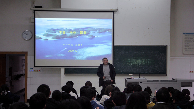 苏胜齐经理以短短一节团课的时间阐述授人以“鱼”、授人以“渔”、授人以“与”、授人以“予”、授人以“欲”。勉励水产学子在往后学习、工作中以“多观察、勤思考、善协作、能创造”为准绳,努力成为有智慧、善变通的高素质人才,为水产行业添砖加瓦!