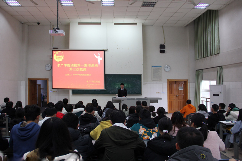 团课在学子齐唱《共青团团歌》后拉开序幕。苏胜齐经理以“专业-学业-职业”为主题,围绕本科专业分类、水产行业、大学学习生活三个方面向同学们展开讲解。水产魅力无限,涵盖面甚广,其“大”在于科学、生态、产业、粮食、健康、文化、美食等。此外,苏胜齐经理还语重心长地教导同学们在学习路上需严格要求自己,明确前进目标,不辞艰辛,勇往直前,将自己培养成合格的共青团员,在思想上与行动上积极向党组织靠拢。