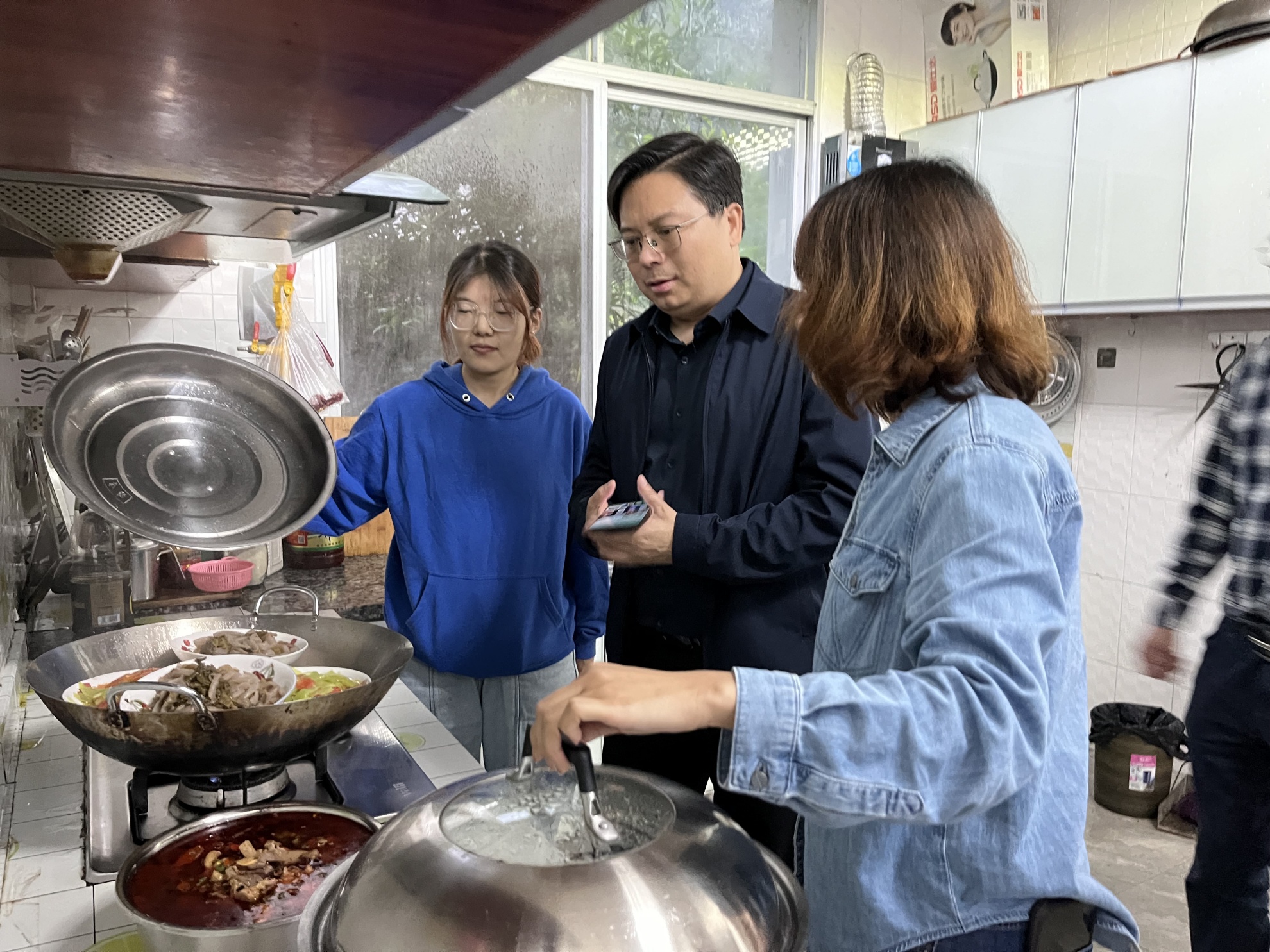 刘一丹副书记率另一队前往重庆市丰都农业科技发展集团有限公司和重庆市蔡轩水产养殖有限公司。在重庆市丰都县委农业农村委党组成员、副主任杨劲松和公司2011级员工、丰都县农委干部葛海龙的指引下,刘一丹副书记考察员工们的实习情况和生活状况,看望同学们的工作学习场地后,向同学们强调,生产实习是加深对水产养殖行业、企业管理与集体意识认识的重要契机,希望同学们在此过程中强化学农爱农思想,增强专业基础与实操技能,实现成长蜕变,为今后学习与个人职业发展奠定良好的基础。