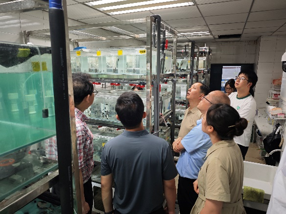 图4. 专家在校内鳜鱼苗种繁育设施现场