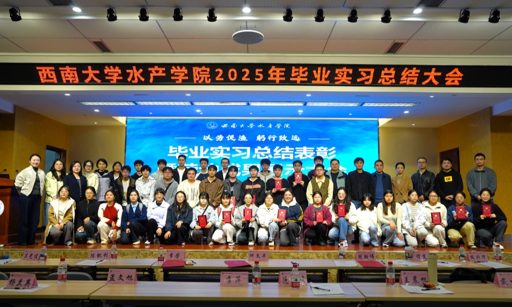 水产养殖学系主任李芳、水族科学与技术系主任周朝伟对实习成果给予充分肯定,赞扬同学们在“凌晨巡塘、徒手清淤、协作救鱼”等实践任务中展现出的吃苦精神和责任担当,强调了实习经历对职业认知塑造的重要价值,并勉励同学们将实习中收获的坚韧品质与专业热爱延续到后续学习发展中。