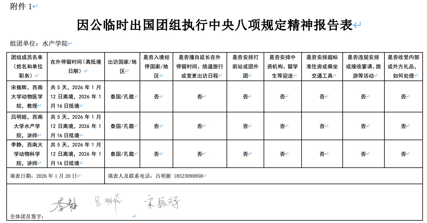 经审核,现将宋振辉、吕明姬和李静三人赴泰国因公临时出国团组执行中央八项规定精神报告表单位公示如下: