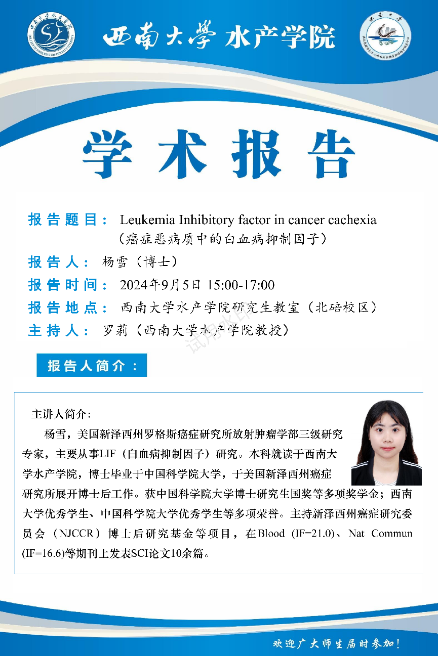 【学术讲坛】Leukemia Inhibitory factor in cancer cachexia(癌症恶病质中的白血病抑制因子)